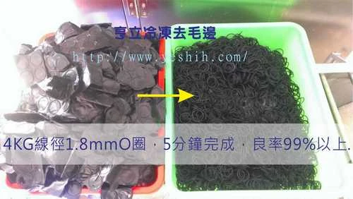 橡膠、矽膠、塑膠製品零件或其他零件產品,利用液態氮冷卻表面後,噴沙去除表面多餘毛邊。